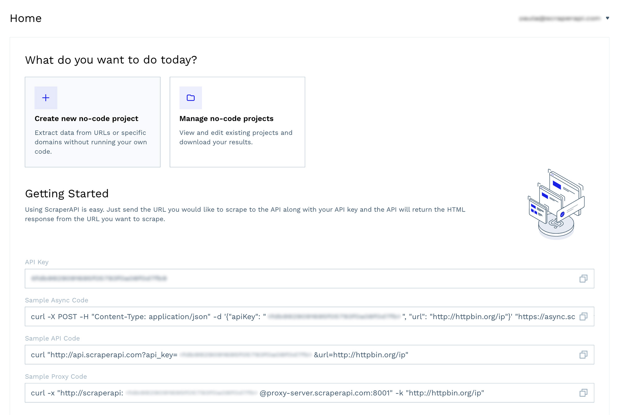 Access all ScraperAPI’s tools from a single account. Use them together or separately, and stay always in control