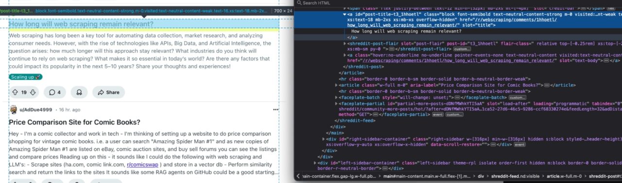 For this example, let’s say that you want to create new content around web scraping with JavaScript and thought to scrape the r/webscraping subreddit for ideas by collecting the titles of the posts.